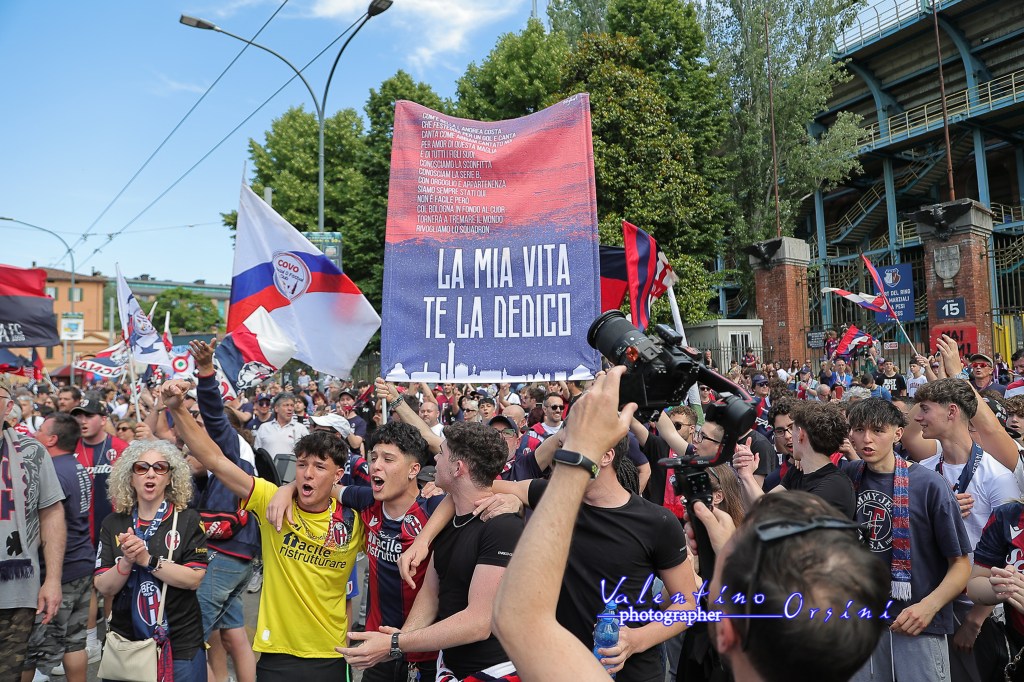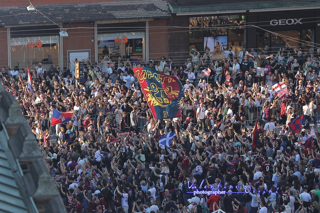 A Santa Isaia i cori si alzano forti, diretti, viscerali. Spuntano anche sfottò per la Juventus e per la Fiorentina. In via Ugo Bassi, tra le nuove rotaie del tram, il pullman accelera ma la folla è compatta, inarrestabile. È un fiume rossoblù che non conosce ostacoli.