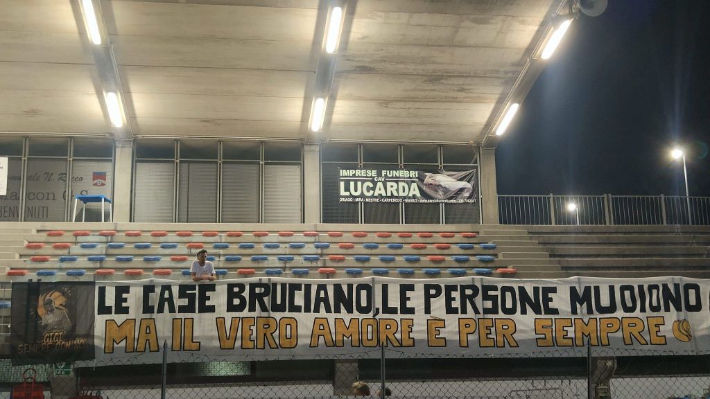 Lo striscione “Le case bruciano, le persone muoiono ma il vero amore è per sempre”, infatti, venne mostrato qualche settimana più tardi allo stadio “Nereo Rocco”, ai margini di una seduta di allenamento.