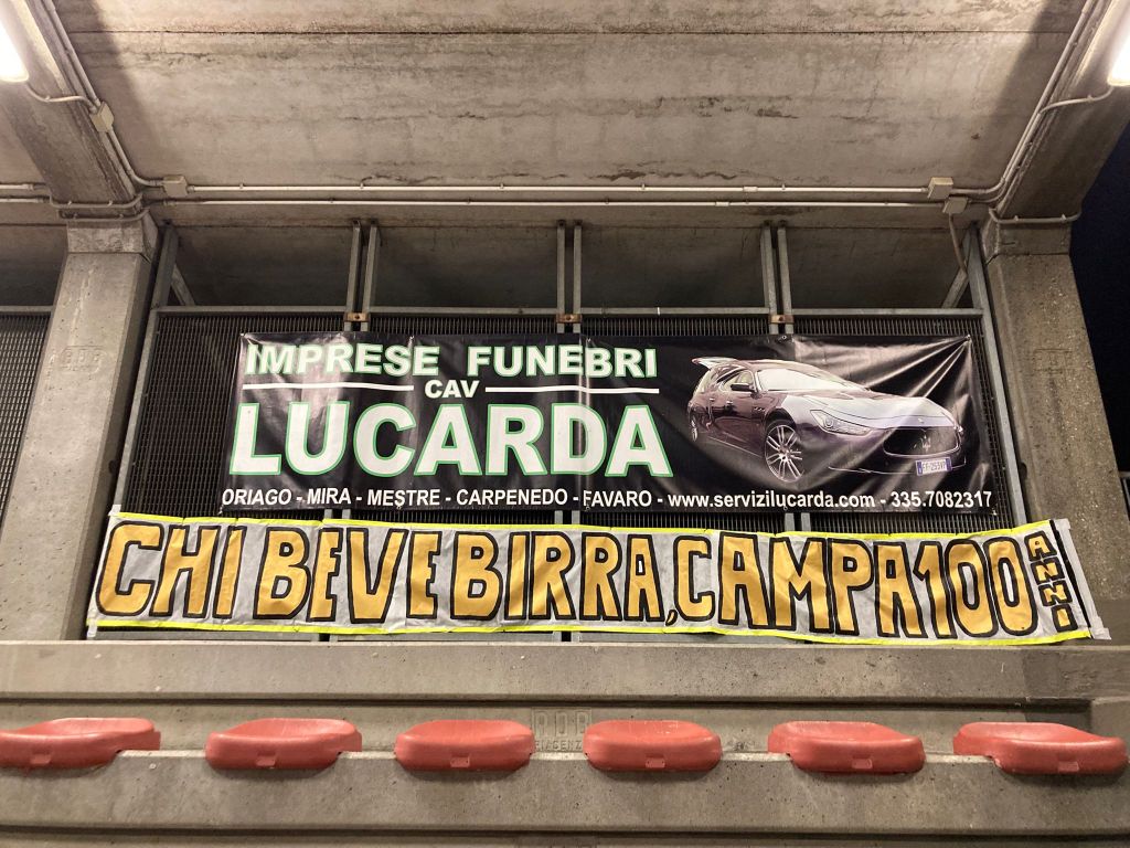 Discutendo con l’unico ed inimitabile magazziniere Franco ed osservando con lui il banner pubblicitario di un’azienda di onoranze funebri collocato in tribuna, nel più classico venerdì del panino post-allenamento, nacque l’idea di realizzare uno striscione con scritto “Chi beve birra, campa 100 anni” da posizionare per scherzo sotto la suddetta pubblicità. Tale striscione capeggiò poi per l’intera stagione in tribuna e rappresentò a pieno il clima sicuramente non da funerale che si respira la domenica sugli spalti animati dai supporters nero-oro.