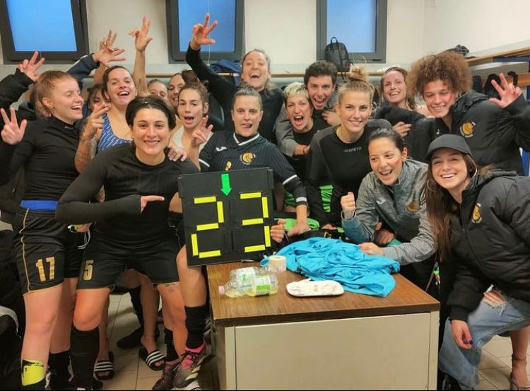 Quale squadra di serie C femminile può permettersi di andare a festeggiare una meritatissima vittoria su un campo così prestigioso sotto il settore occupato in trasferta, a testa alta, dai loro fedelissimi ed indomabili tifosi?