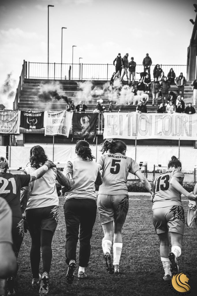 Più difficile è la vittoria, più grande è la felicità nel vincere (Pelè dixit): all’ennesimo trionfo dei supporters nero-oro corrispose il primo meritatissimo successo sul campo per il “Venezia scrauso” nel derby (2-0). Una grande, grandissima soddisfazione colta dalle Leonesse del Venezia 1985 che corsero sotto i loro tifosi (altrettanto protagonisti in questo successo) a festeggiare finalmente la realizzazione di un sogno cullato assieme per molto (forse anche troppo) tempo.