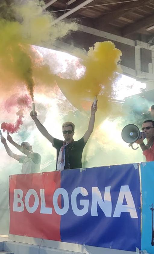 Dopo un aperitivo al Bonarelli e un pranzo memorabile in allegra compagnia (Trattoria da Zia Allari da quel giorno divenne tappa obbligatoria di ogni incontro di tifo nero-oro-rossoblu: un’oasi di piacere culinario!), in cui si ritrovarono gli amici Alfio e Mirko e si conobbero altri amici del fanclub bolognese come Francesco e Gabriele, ci si spostò al campo per la partita.