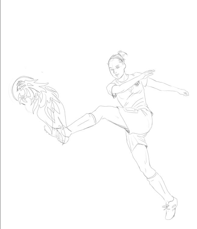 Dalla collaborazione con l’illustratrice sarda Danila “Jun Fender”, l’idea del disegno di una giocatrice del Venezia 1985 che calcia un pallone simbolicamente infuocato prese forma e definizione. Lo step successivo fu quello di far stampare il disegno definitivo e organizzare a livello operativo le modalità di stesura del telone. Importante, in tal senso, fu l’apporto ingegnoso di Oliviero, che trovò la soluzione per fare fronte a come poter tenere in posizione un’opera così imponente (non avendo a disposizione un numero di tifosi e simpatizzanti tale da poter sostenere la grandiosità dell’intera coreografia).