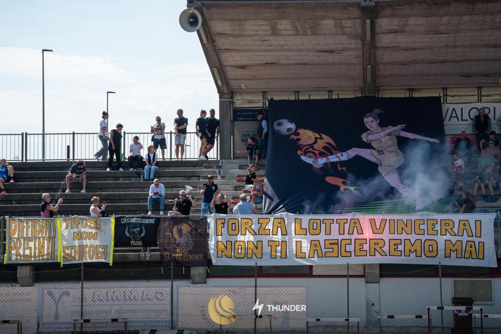 Che fosse a Marcon o a Vicenza, Jesi, Perugia, non cambiò niente: il tifo nero-oro nella stagione 2023/2024 fu sempre al fianco della propria squadra, a volare sulle ali di quell’entusiasmo ricercato sin dal ritiro pre-campionato e a raccogliere insieme soddisfazioni in lungo e in largo ogni fine settimana.