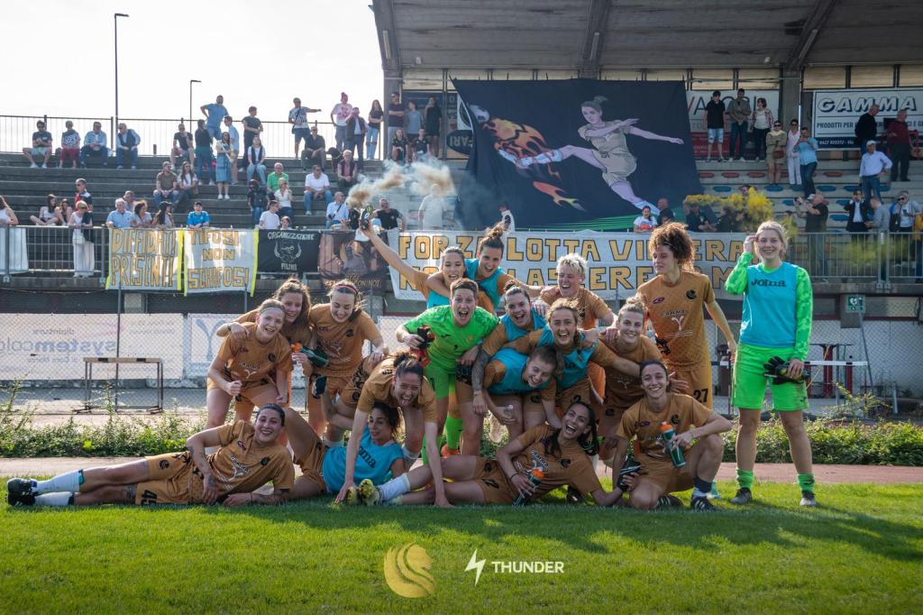 La vittoria nel derby col Padova lanciò la squadra ad alta quota anche in classifica: beffarda fu la sconfitta per 1-0 contro il Villorba alla penultima di campionato (concluso poi alla fine al quinto posto, a due punti dalla terza), nella scenografica cornice dello stadio “Omobono Tenni” di Treviso; in questa occasione, i Tifosi non Schifosi poterono esprimersi liberamente a sostegno delle proprie ragazze (a differenza di quanto successo mesi prima in Coppa a Ferrara) ma questo purtroppo non bastò. Ad un entusiasmo galattico, bisogna ammettere che corrispose anche una fisiologica stanchezza per una cavalcata trionfale durata quasi nove mesi. Questa sconfitta non infangò assolutamente una stagione che si concluse al meglio delle proprie possibilità, con una vittoria casalinga contro il Sudtirol (2-0): i supporters nero-oro applaudirono sugli spalti l’ultima fatica delle Leonesse e il loro percorso felicemente completato.