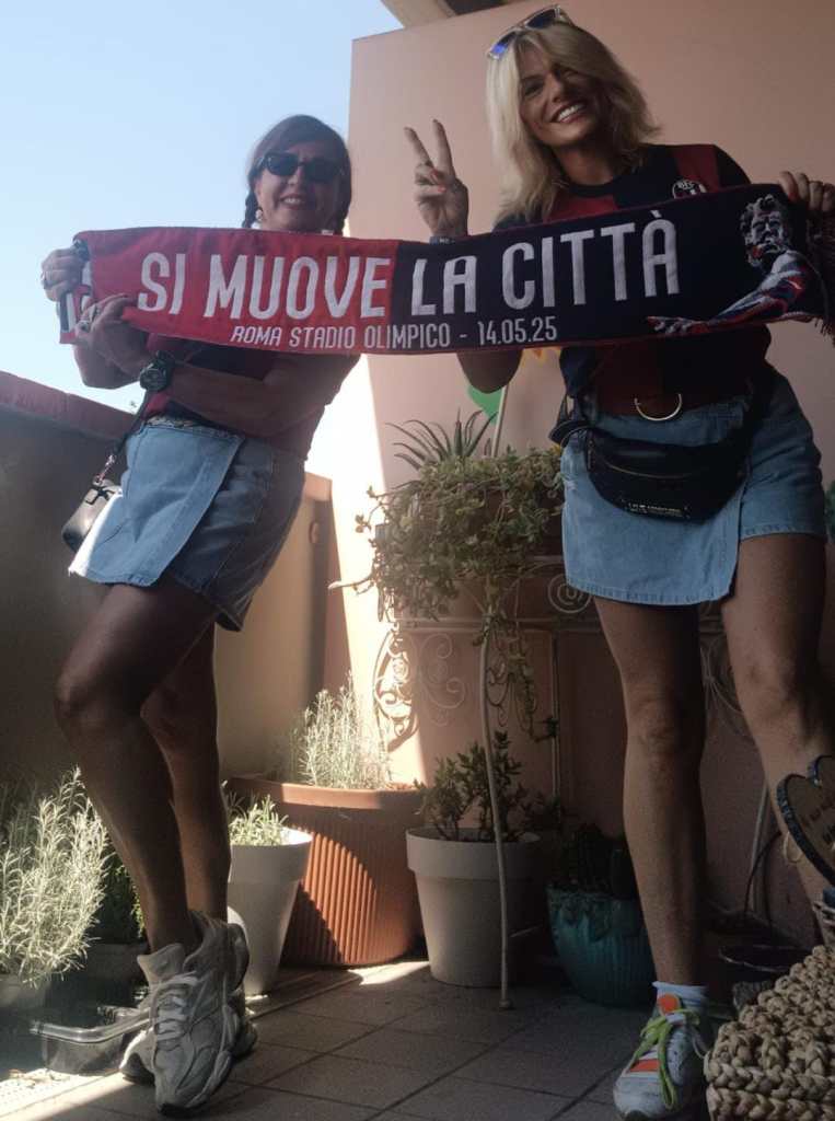 “Sicuramente lo stadio è casa. L’emozione più forte resta la trasferta di Roma contro il Milan: abbiamo vinto la Coppa Italia e alzato il trofeo al cielo. Era il mio primo trionfo da tifosa, un momento che resterà impresso nella mia mente come un tatuaggio. Ho vissuto quel viaggio con, oltre ai miei figli, alcuni dei miei più cari amici tra le quali la grande Katia Serra, una professionista che stimo tantissimo. Per me quella Coppa è stata il coronamento di una vita intera vissuta con i colori rossoblu nel cuore”.