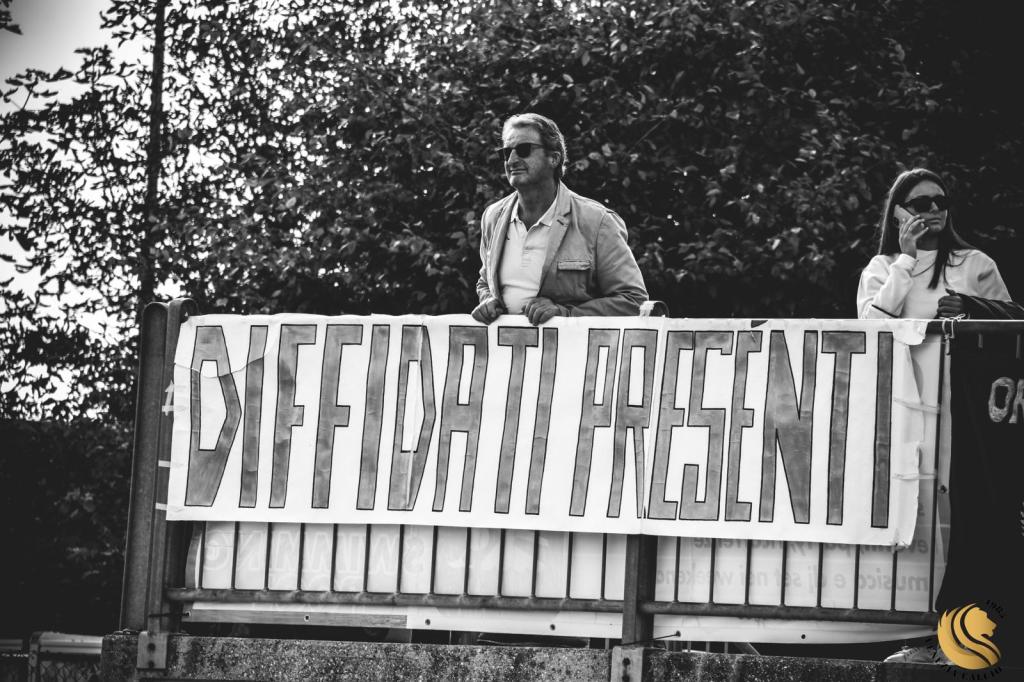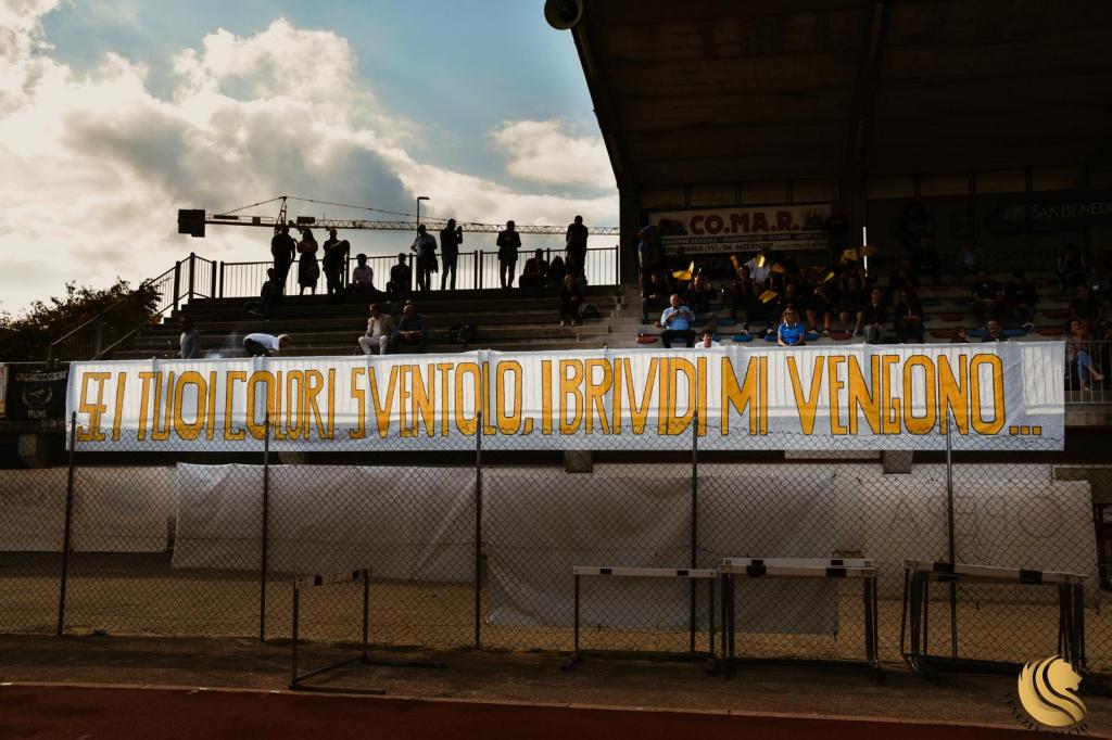 “Alla mia generazione non f*tte di niente, non manda messaggi ma messaggia continuamente” scriveva Marracash qualche anno fa in una sua canzone: non è proprio il caso della tifoseria nero-oro che, nella partita casalinga di ritorno di Coppa Italia di Serie C femminile contro il Real Vicenza, si è confermata ancora una volta non banale e ha esposto uno striscione dal contenuto molto forte e simbolico. “C’è chi è stato ammaestrato e subisce col capo chinato. NOI NO” è un’affermazione ulteriore del loro “status”: un manifesto storico, per quanto riguarda la loro narrazione costruita su coreografie emozionanti e memorabili e su gesti semplici (le “piccole cose”) ma che riempiono il cuore, e programmatico, per quel che attiene la stagione sportiva appena avviata ed un futuro che li attende per superare nuove sfide e ostacoli. Multe, campagne diffamatorie via social, diffide e minacce non hanno ancora fermato quest’onda inesorabilmente carica di magico ardore e fermento creativo e non lo faranno mai, se quell’idea di “NOI” si rafforzerà concretamente attorno ad un senso di appartenenza e di spirito comunitario. Scelte burocratiche fuori da ogni logica massacrano quel trasporto emotivo che sottende sacrifici di ogni genere, ogni settimana e domenica, per seguire una squadra e sostenerla. Che futuro potrebbero avere i Tifosi non Schifosi e, più in generale, un movimento nazionale di tifo pulito e sano nel calcio femminile se si ragionasse in termini egocentrici (ognuno per sé)? Durerebbero ventiquattro ore come le stories di Instagram? Forse no ma tutti gli sforzi sicuramente finirebbero accompagnati, in maniera spietata e triste, dal tempo nel dimenticatoio.