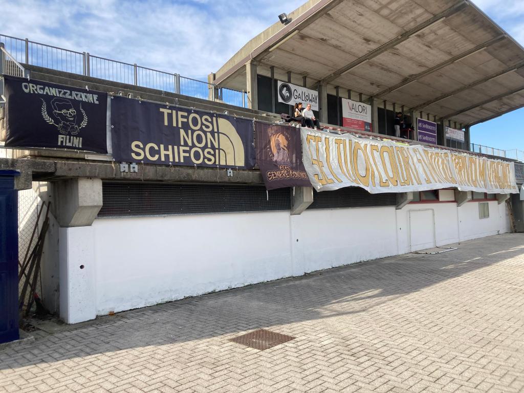 La tribuna è stata tappezzata con i classici striscioni del tifo nero-oro, in casa e in trasferta: accanto a essi è stato riposizionato il monumentale e inossidabilmente storico “Se i tuoi colori sventolo, i brividi mi vengono…”, simbolo di un sentimento di passione autentica.