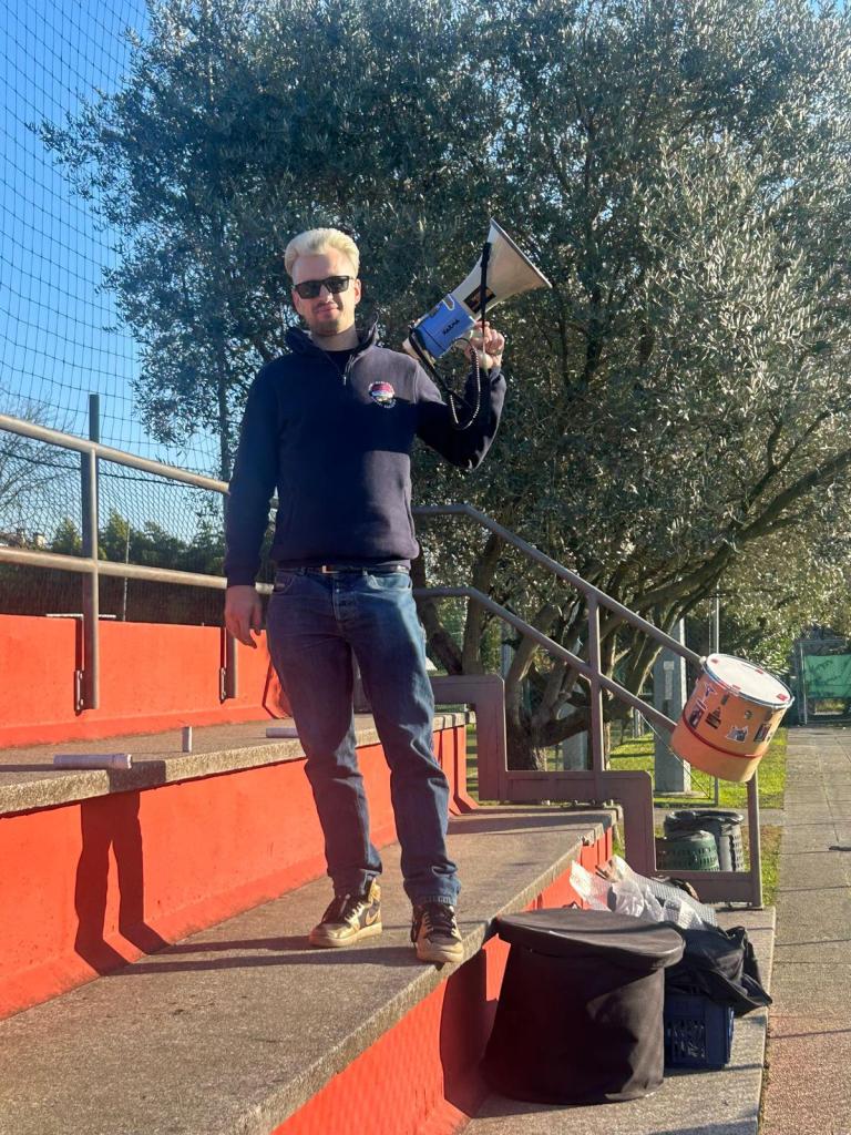 L’entusiasmo e la passione, che da sempre caratterizzano il tifo nero-oro al seguito della squadra allenata da mister Giancarlo Murru, sono stati protagonisti in una piacevole e soleggiata domenica calcistica sugli spalti di Vicenza (sponda Real). In casa e in trasferta non mancano mai i cori ritmati dal tamburo e gli striscioni a sostegno delle Leonesse, anche se gli oneri (e poi gli onori, certo!) e la credibilità del gruppo “Tifosi non Schifosi” ricadono totalmente sulle spalle del loro leader Filippo. Egli, tuttavia, non è sembrato risentirne ed è rimasto concentrato nel sostenere incondizionatamente la squadra del suo cuore durante tutto l’arco della partita.