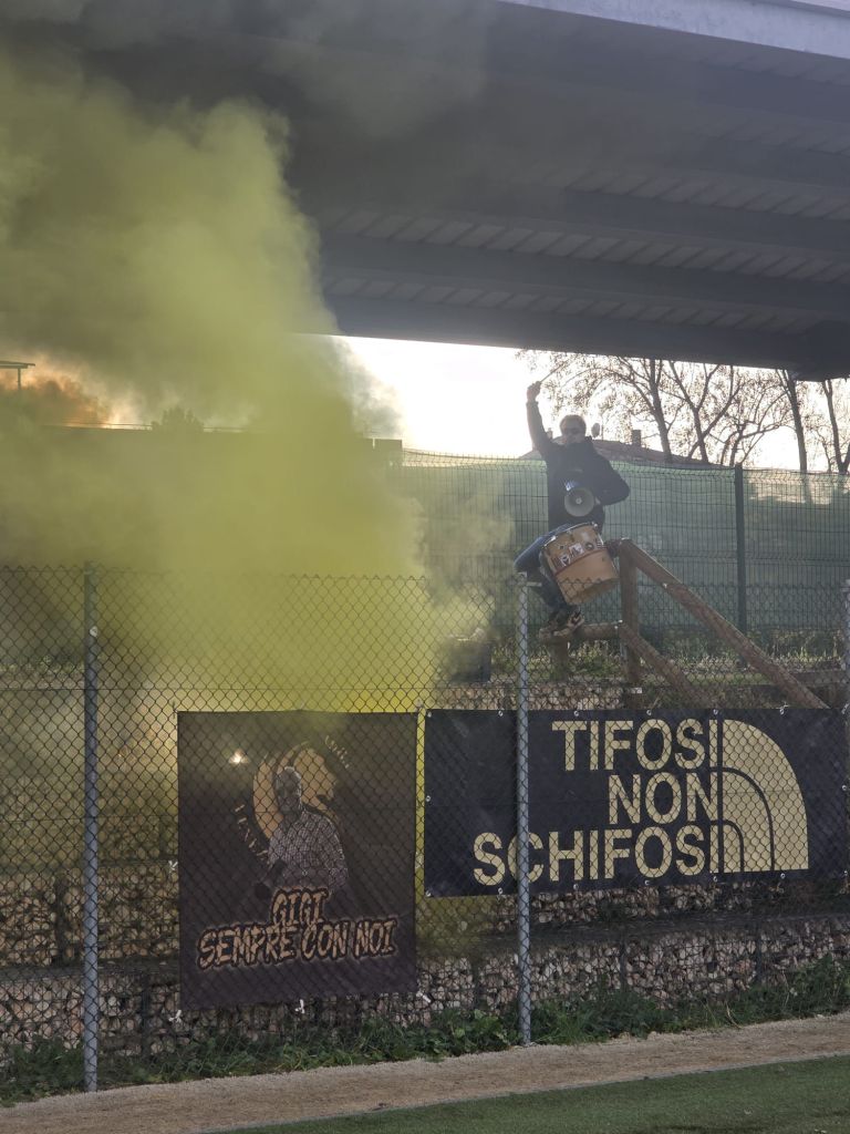 Se dopo i sacrifici di una settimana, si arriva allo stadio non solo per mettere giù due striscioni ma anche con la consapevolezza di poter lasciare il segno, ecco che si concretizza maestosamente ancora una volta l’unicità caratterizzante il tifo a tinte nero-oro: accendere una fumogenata importante come quella di domenica all’ingresso in campo delle squadre, è un chiaro messaggio dichiarativo in tal senso.