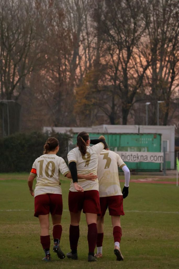 La squadra domina il gioco, mantiene il ritmo alto e sfiora il raddoppio con Trevisiol. Poco dopo, al 36’, arriva il meritato 2-0: Morettin apre a sinistra, Trevisiol salta l’avversaria, calcia, riprende la ribattuta del portiere e deposita in rete. Potenza, freddezza, fame.