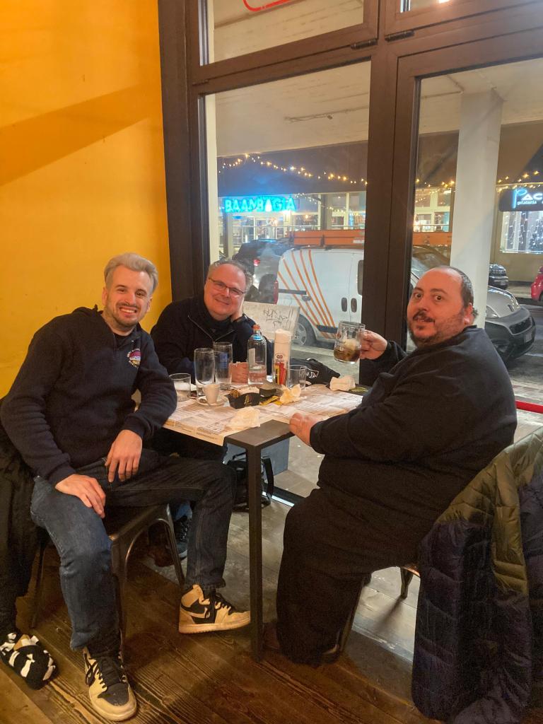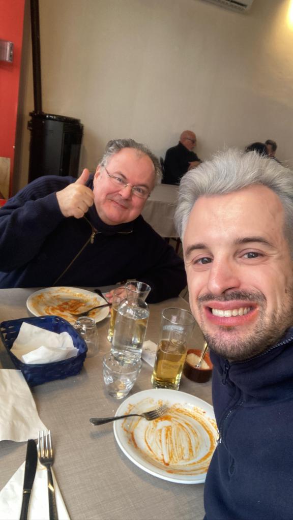 Nell’immancabile tappa alla “Trattoria da Zia Allari”, resa ancora più suggestiva dalla neve, i due tifosi hanno gustato un pranzo abbondante e scambiato qualche chiacchiera in un clima conviviale, prima di rimettersi in viaggio verso la costa marchigiana. A bordo dell’iconica Seat Ibiza rossa di Alfio, sono arrivati a destinazione nel tardo pomeriggio. Ad accoglierli, un emozionatissimo Danilone insieme alla madre Rosalba, felici di rivedere i due “facinorosi” di Bologna e Venezia a sei mesi dalla precedente visita. Quante cose da raccontarsi, quante emozioni da condividere: tra abbracci e sorrisi, aneddoti e risate, birre e patatine, qualche ora trascorsa in un ambiente familiare prima di uscire per una pizza alla Baia Flaminia. Lontani dalle malignità e immersi in una sincera amicizia, la serata è trascorsa magicamente, in un’atmosfera serena e distesa. Numerose le foto a testimonianza di un incontro tanto atteso quanto vissuto con sentimento reciproco.