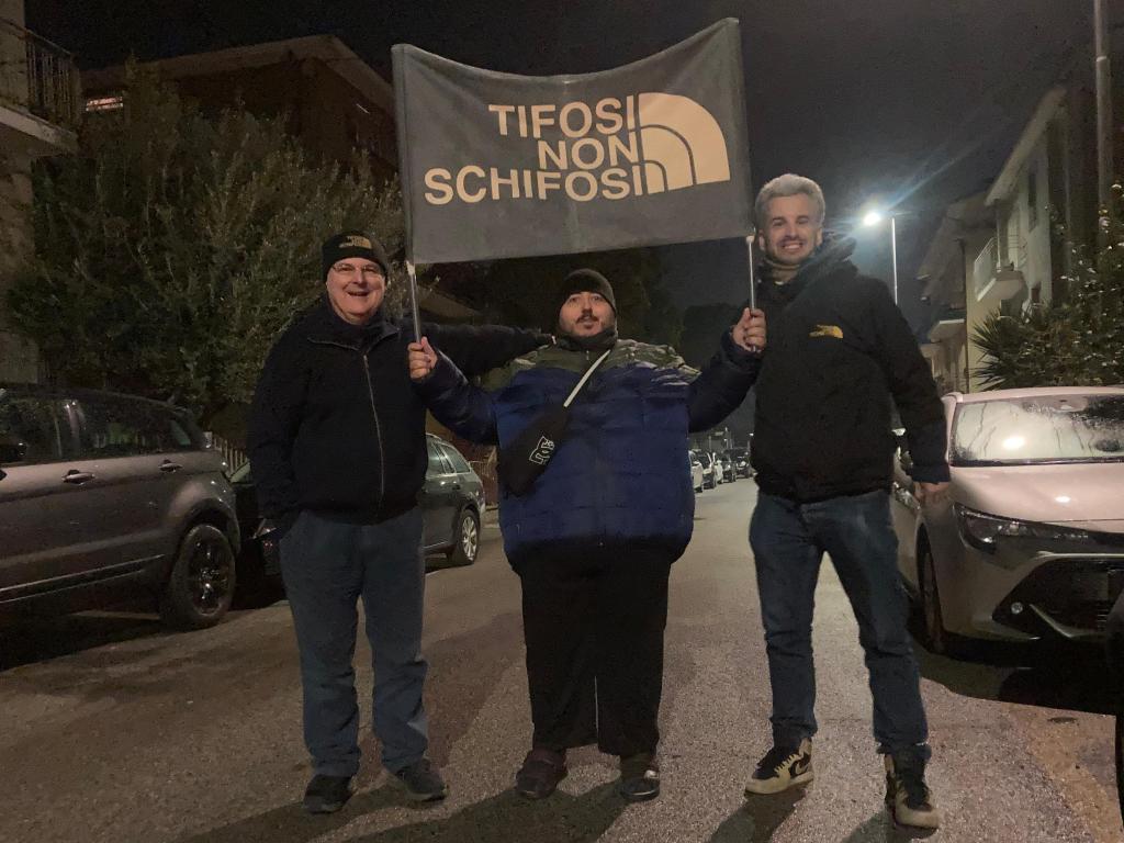 Dopo cena, due passi sotto i portici pesaresi: in un clima di divertimento, il trio si è dilettato in pose fotografiche con bandiere e stendardi dei “Tifosi non Schifosi”, accompagnate da cori lanciati sotto lo sguardo attonito dei pochi passanti.
