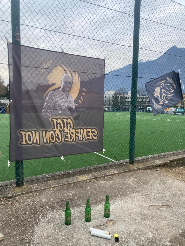 A posteriori, si può però anche ricordare simpaticamente che la coreografia non è proprio riuscita come da progetto: a supporto di tutto ciò, doveva esserci anche un “lanciafumo” giallo… Peccato che, per inesperienza (onore però a Paolino che ci aveva visto giusto ma non è stato preso in considerazione dagli “schifosi” compagni di tifo!), sia stato montato al contrario e, all’accensione, abbia sparato il fumo verso il parcheggio retrostante la tribuna e non verso il campo. Potete immaginare l’ilarità scatenatasi in tribuna (tra chi se ne è reso conto, pochi per fortuna)… Una buona prestazione in campo, anche con alcune giovani Leonesse di belle speranze che hanno avuto modo di mettersi in luce sul palcoscenico della prima squadra, coronata da una vittoria per 3-1 sulla compagine tedesca: un’iniezione di fiducia per squadra e tifosi in vista dell’impegno in trasferta a Trento di domenica. Riempito il cuore di emozioni e la pancia di tutto il ben di Dio sopradescritto, il “panino del venerdì” è stato rinviato ma una parte della squadra, dirigenza e tifoseria l’ha piacevolmente sostituito con un sushi a Marcon, insieme alla prima squadra maschile. Si arriva quindi alla domenica, con una partenza da Marcon mista tra pulmini e auto.